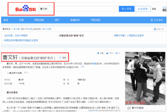 曹老爷子已经被百度百科收入库中