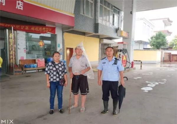 熟悉辖区环境的民警开着警车带上张大姐,在张大爷曾经说过的地点附近沿路询问。功夫不负有心人,在多次询问毫无线索的情况下,民警远远看到一个加油站内停着一辆人力三路车,旁边站着一名头顶塑料布躲雨的老人。随着民警手指的方向,张大姐看了一眼,热泪盈眶:“谢谢你们,谢谢,那就是我爸!”