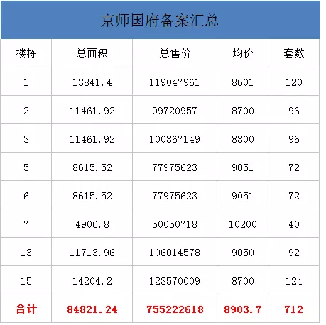 阜阳市发改委网站(市物价局)发布中环城1#-3#、5#-7#、13#、15#商品房销售明码标价及相关信息公示,中环城1#-3#、5#-7#、13#、15#共备案712套住宅,备案均价8903.7元/㎡,总备案建筑面积84821.24平米。详情如下: